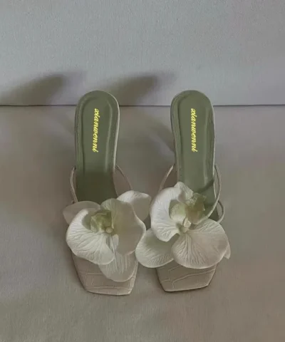 Brand Shoes Female 2024 Summer New Elegant Flowers Design Women’s Slippers Casual Fashionable Outer Wear High Heel Slides Women