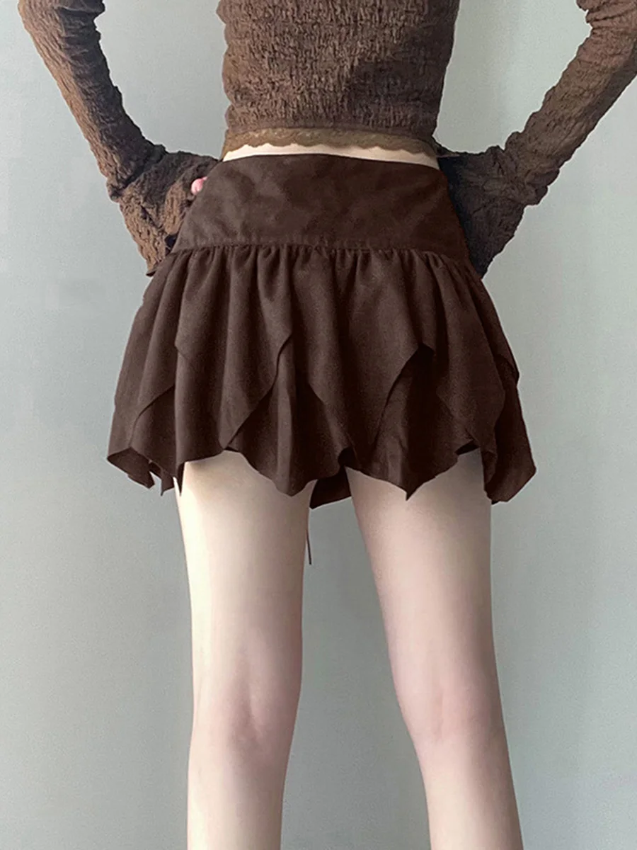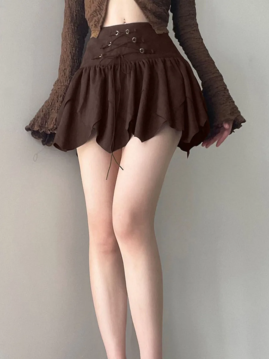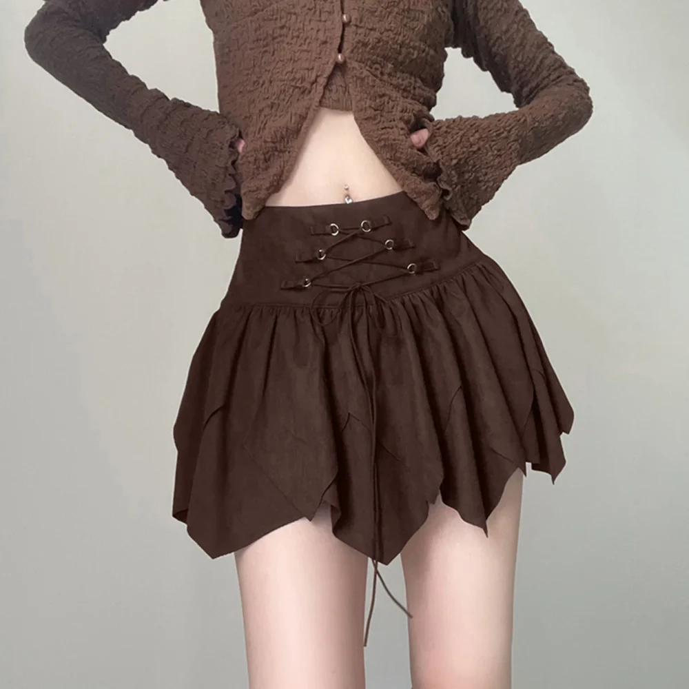 Women’s Summer Mini Skirts Low Rise Irregular Hem Pleated Tie Up Short Skirt